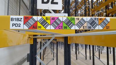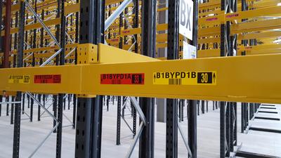Colour-coded Upright and Cross-Beam Multilevel barcode labels simplify the management of racking locations in your warehouse