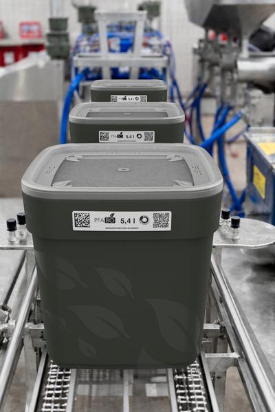 Like the bucket itself, the labels are made of polypropylene, which facilitates mono-material recycling. Thanks to GS1-compliant codes, the containers can be integrated into existing ERP systems and digitally tracked.